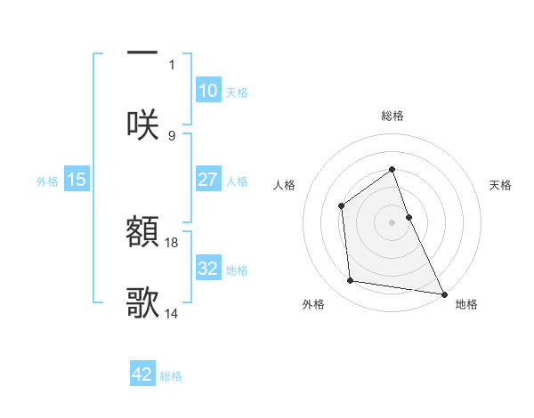 一咲 額歌さんの総格は42画の3点!