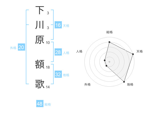 下川原 額歌さんを姓名の画数から五運を鑑定