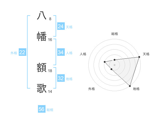 八幡 額歌さんを姓名の画数から五運を鑑定