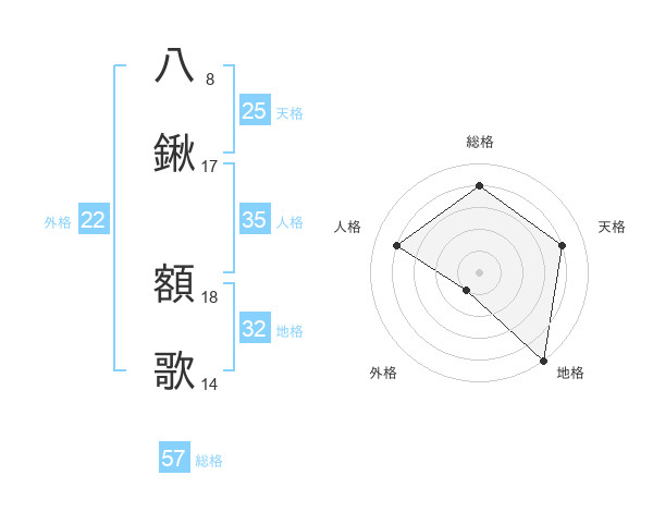 八鍬 額歌さんの総格は57画の4点!