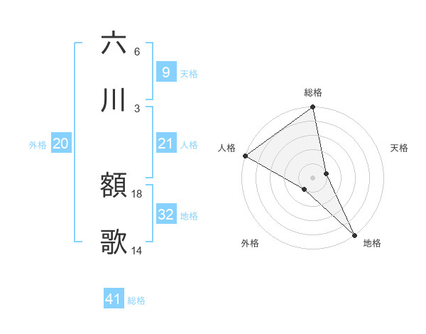 六川 額歌さんの総格は41画の5点!