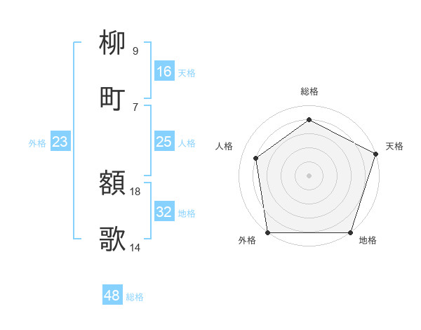 柳町 額歌さんの外格は23画の5点!