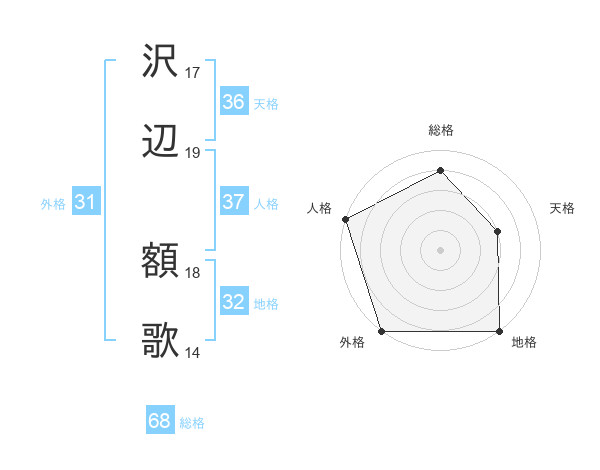 沢辺 額歌さんの総格は68画の4点!