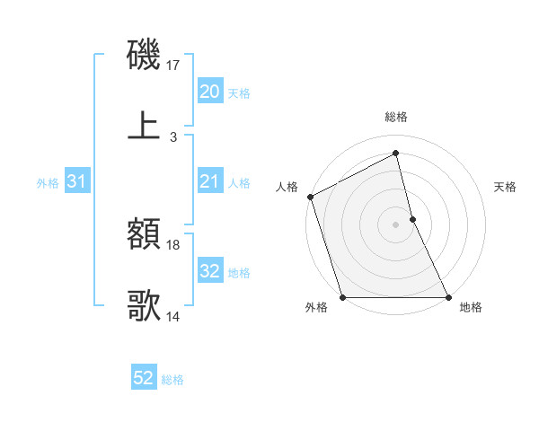磯上 額歌さんを姓名の画数から五運を鑑定
