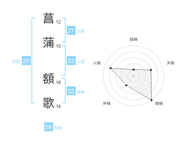 菖蒲 額歌さんを姓名の画数から五運を鑑定