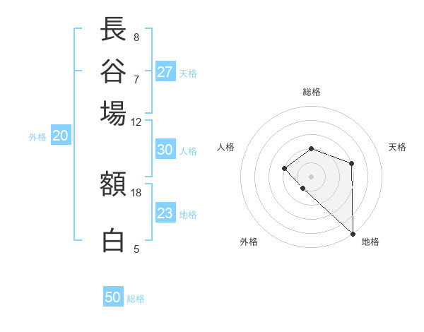 長谷場 額白さんを姓名の画数から五運を鑑定