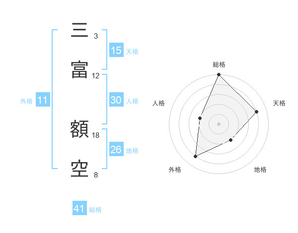 三富 額空さんの天格は15画の4点!