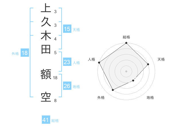 上久木田 額空さんを姓名の画数から五運を鑑定