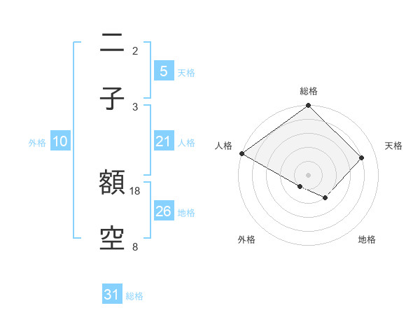 二子 額空さんの総格は31画の5点!