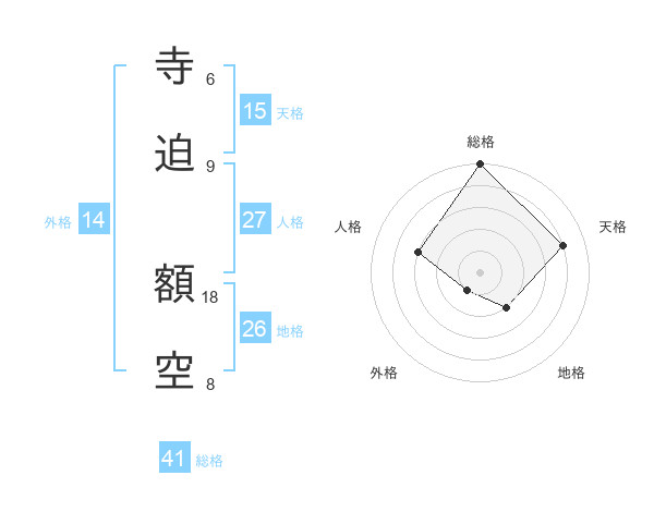 寺迫 額空さんを姓名の画数から五運を鑑定