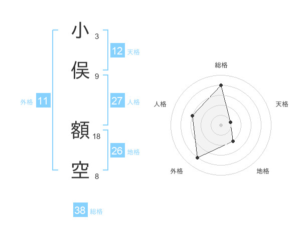 小俣 額空さんの総格は38画の4点!