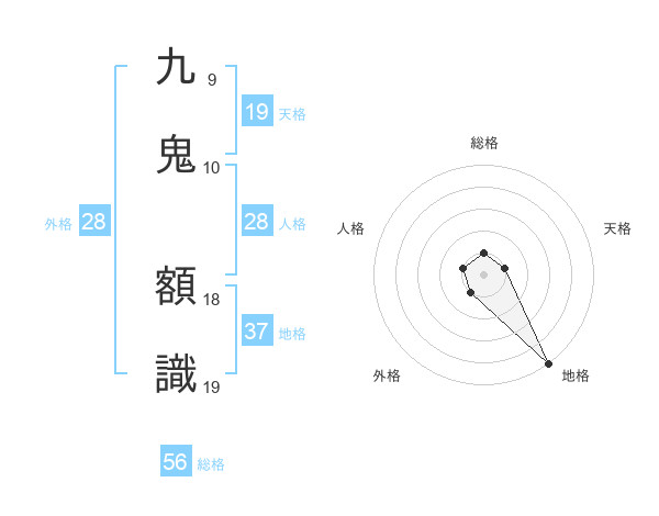 九鬼 額識さんの天格は19画の1点!