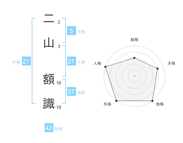 二山 額識さんの外格は21画の5点!