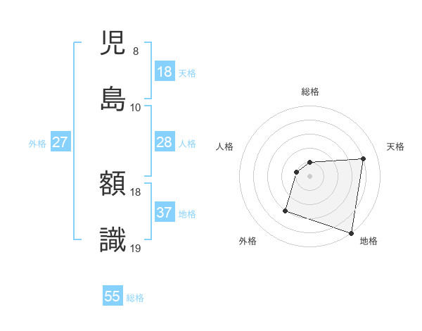 児島 額識さんの地格は37画の5点!