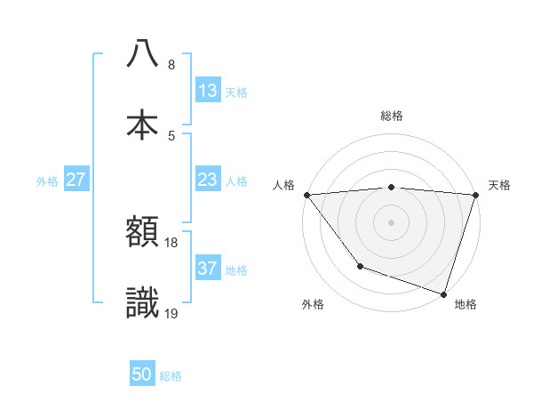 八本 額識さんの天格は13画の5点!