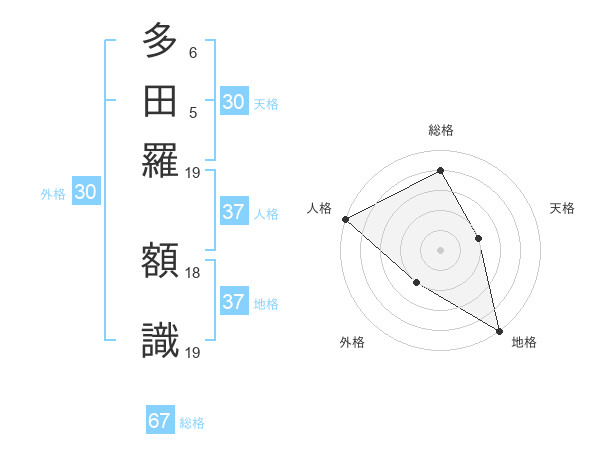 多田羅 額識さんの総格は67画の4点!