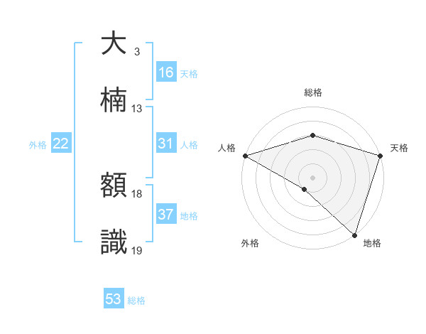 大楠 額識さんの総格は53画の3点!