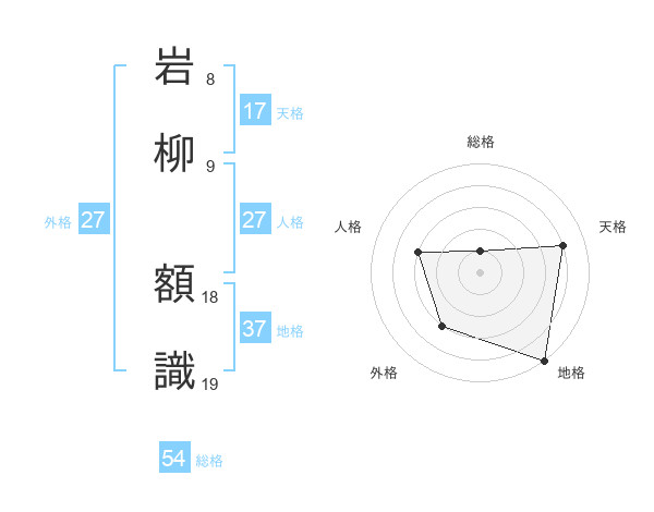 岩柳 額識さんの総格は54画の1点!