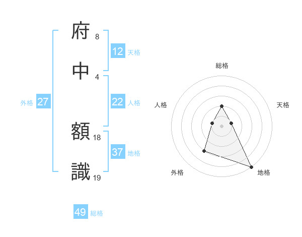 府中 額識さんの総格は49画の2点!