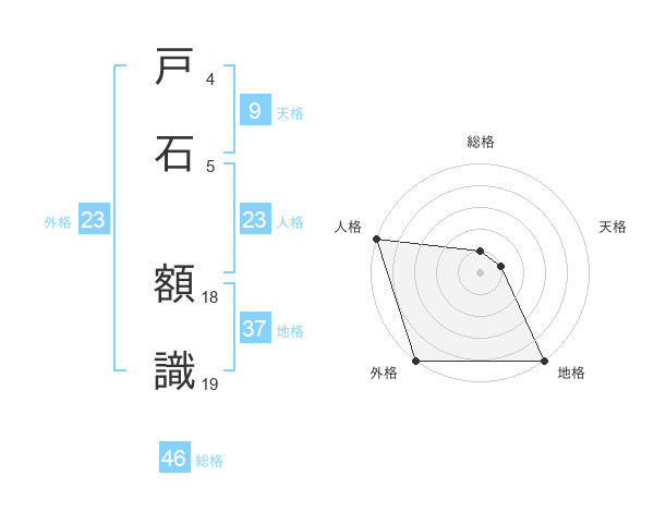 戸石 額識さんの人格は23画の5点!