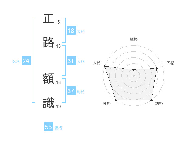 正路 額識さんの総格は55画の1点!