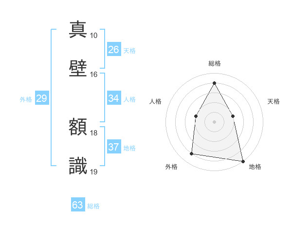 真壁 額識さんの地格は37画の5点!