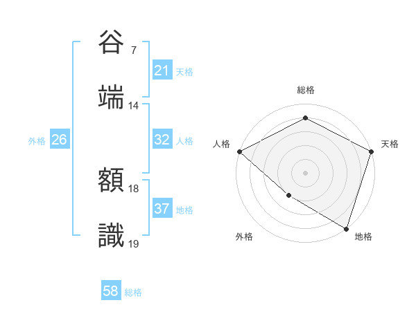 谷端 額識さんの総格は58画の4点!