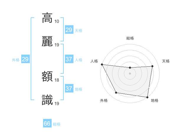 高麗 額識さんの総格は66画の1点!