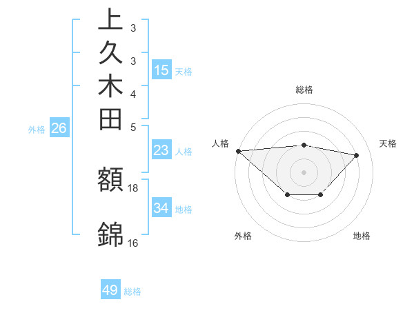 上久木田 額錦さんを姓名の画数から五運を鑑定