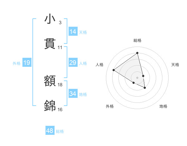 小貫 額錦さんの総格は48画の4点!