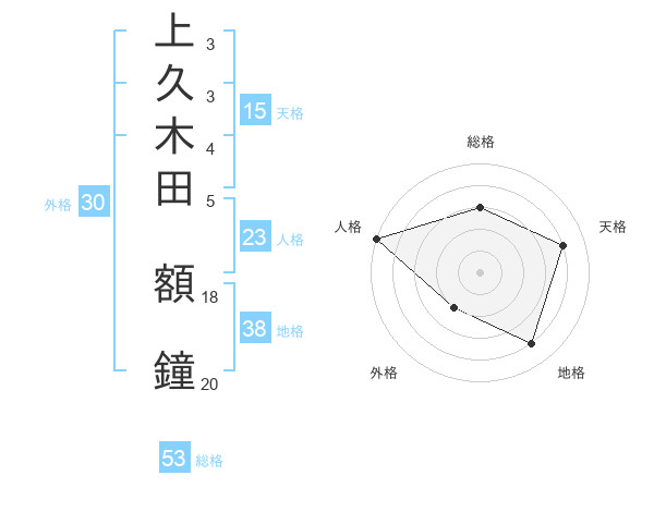 上久木田 額鐘さんを姓名の画数から五運を鑑定