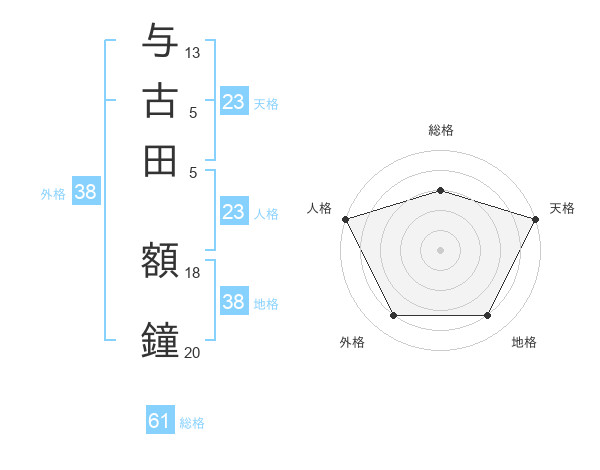 与古田 額鐘さんの人格は23画の5点!
