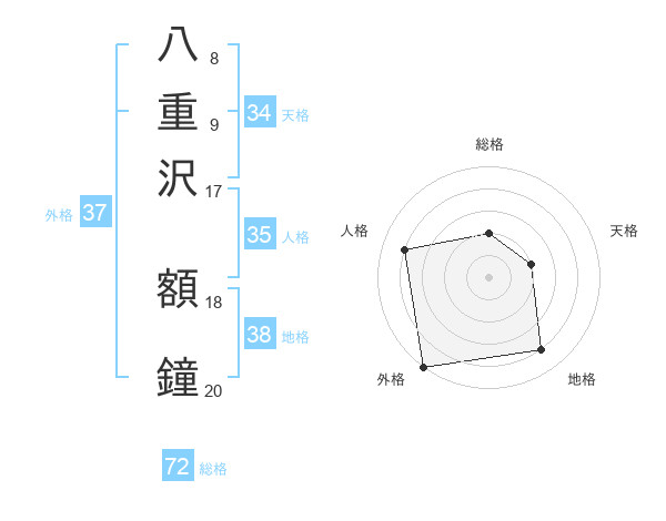 八重沢 額鐘さんを姓名の画数から五運を鑑定