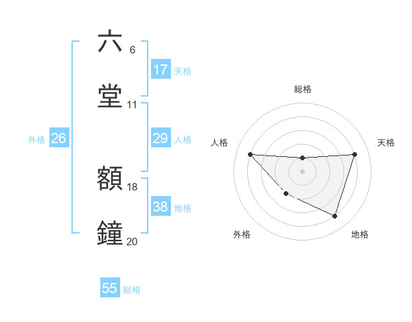 六堂 額鐘さんの総格は55画の1点!