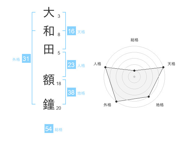 大和田 額鐘さんを姓名の画数から五運を鑑定