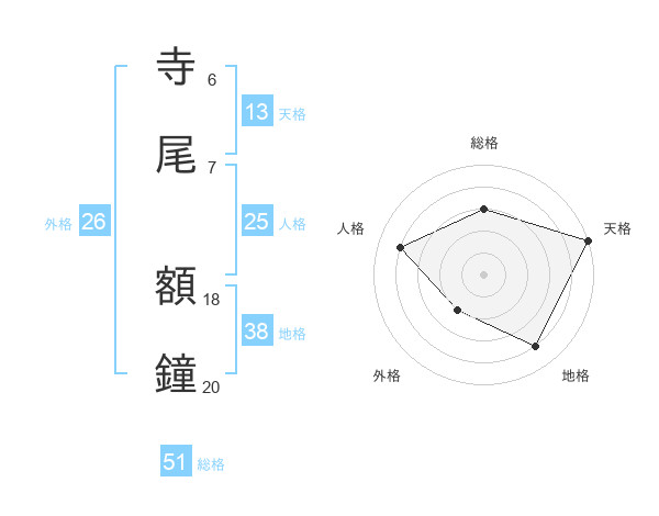 寺尾 額鐘さんの総格は51画の3点!