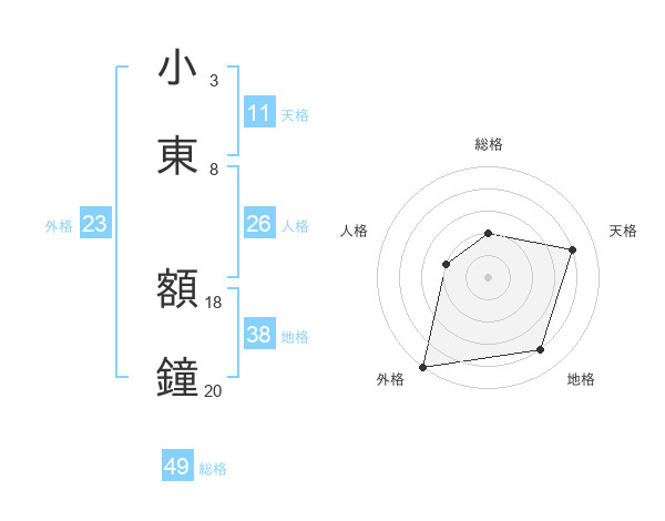 小東 額鐘さんを姓名の画数から五運を鑑定