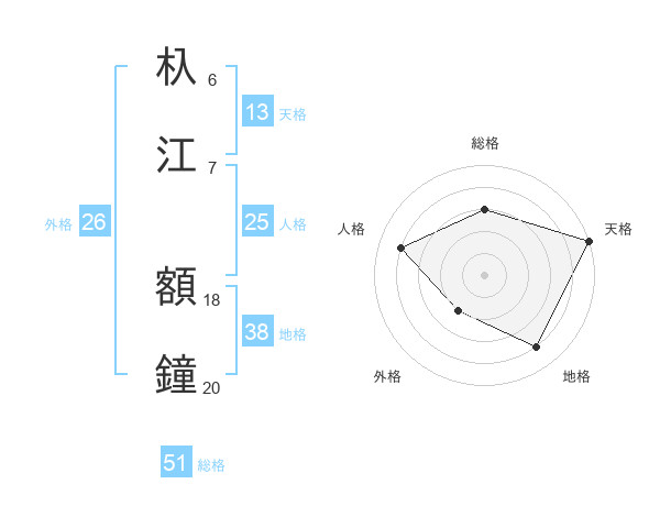 杁江 額鐘さんの総格は51画の3点!