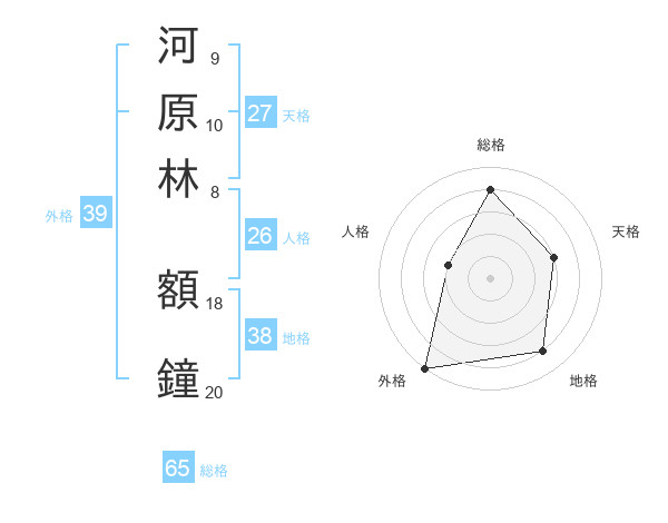 河原林 額鐘さんを姓名の画数から五運を鑑定