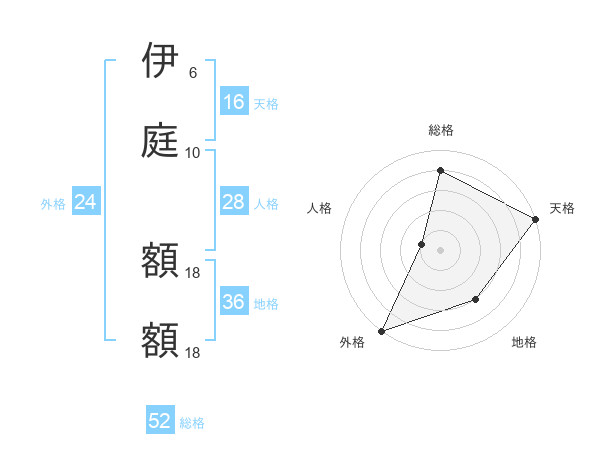 伊庭 額額さんの総格は52画の4点!