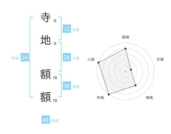 寺地 額額さんの総格は48画の4点!