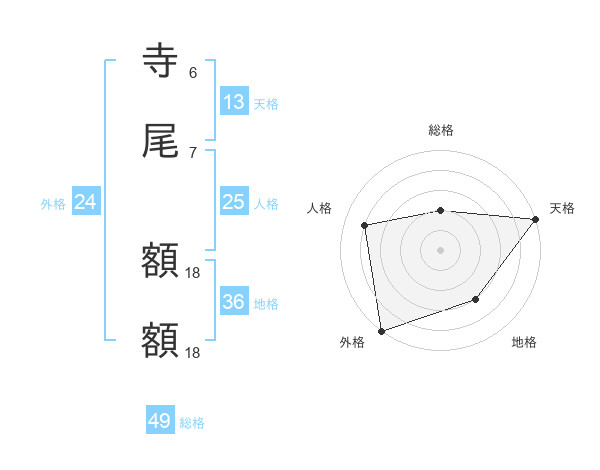 寺尾 額額さんの総格は49画の2点!