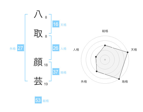 八取 顔芸さんを姓名の画数から五運を鑑定