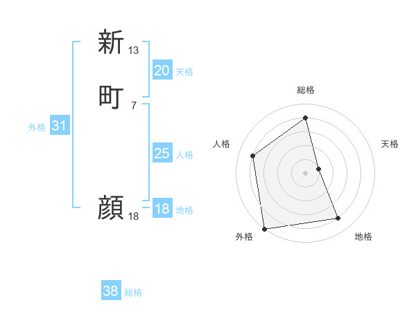 新町 顔さんの総格は38画の4点!