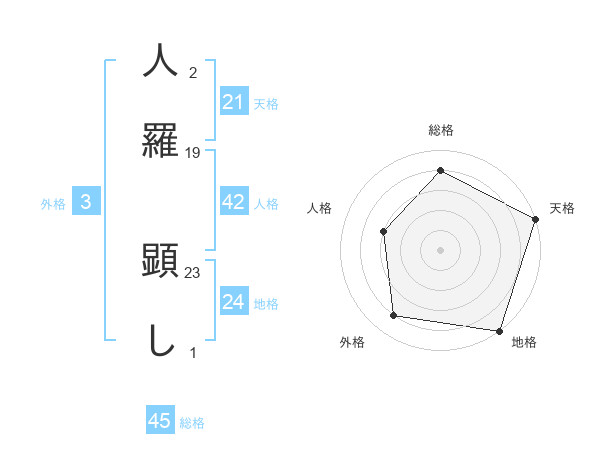 人羅 顕しさんの総格は45画の4点!
