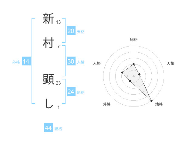 新村 顕しさんの総格は44画の2点!