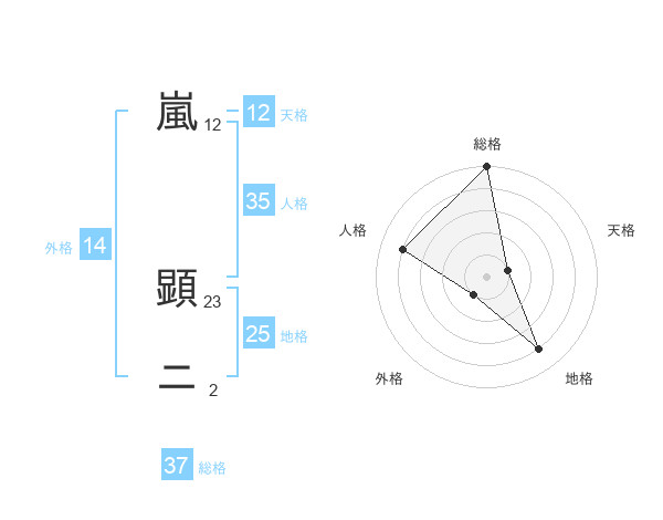 嵐 顕ニさんを姓名の画数から五運を鑑定