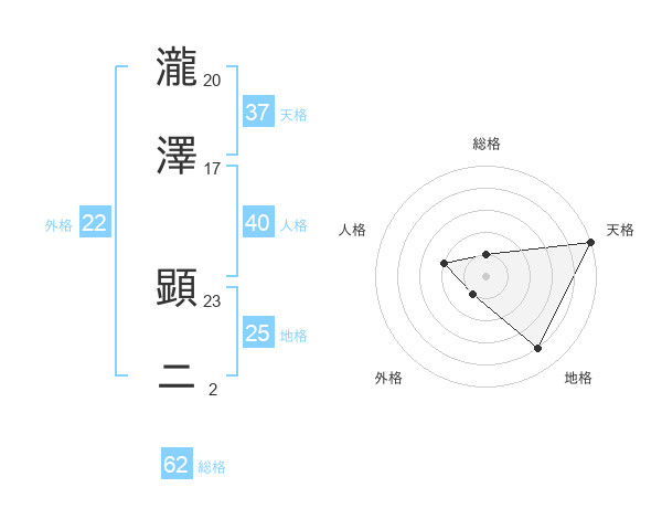 瀧澤 顕ニさんを姓名の画数から五運を鑑定