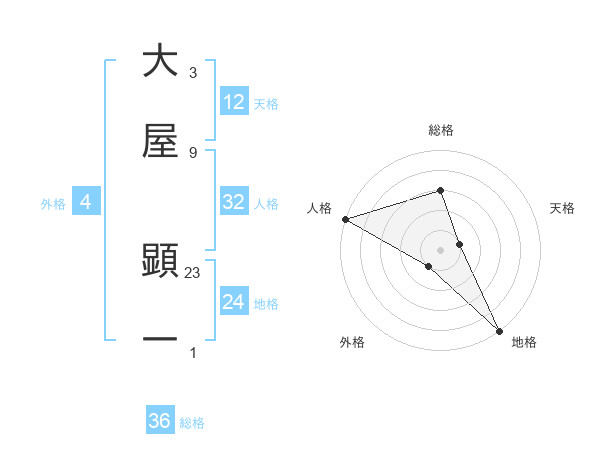 大屋 顕一さんを姓名の画数から五運を鑑定