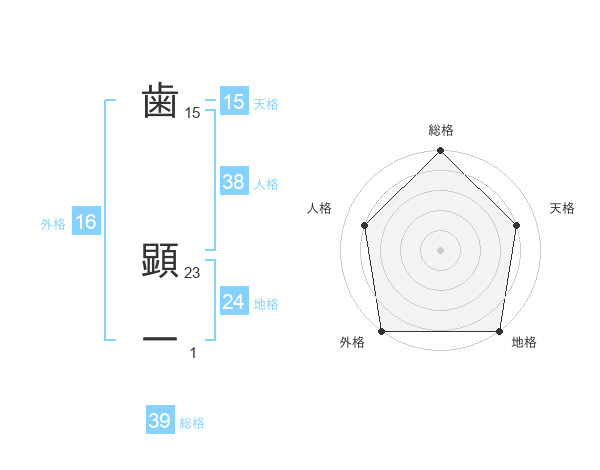 歯 顕一さんの総格は39画の5点!